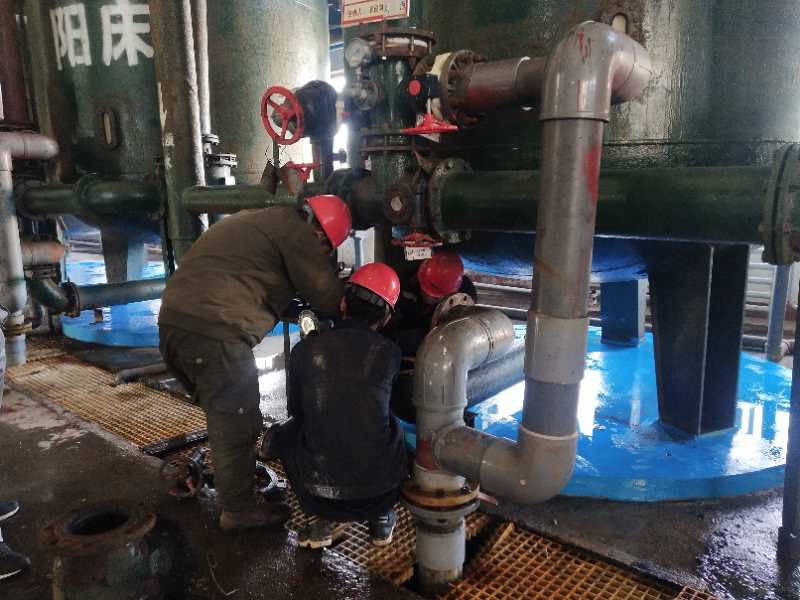 2月17日,公司安排一廠區(qū)停車,舊化水利用這次機會,把系統(tǒng)上的閥門拆檢52個,更換8個,檢查捕捉器9個,配合新項目留甩頭5個,清理蓮花池水塔,清理酸堿廢水池。為期3天的檢修,但因為它的特殊性,停的遲,送的早,還得保證各分廠消防用水的供給,舊化水的停車檢修時間其實只有一天,時間緊,任務重,但是在領導的合理安排下,舊化水工段按時完成了停車檢修任務。