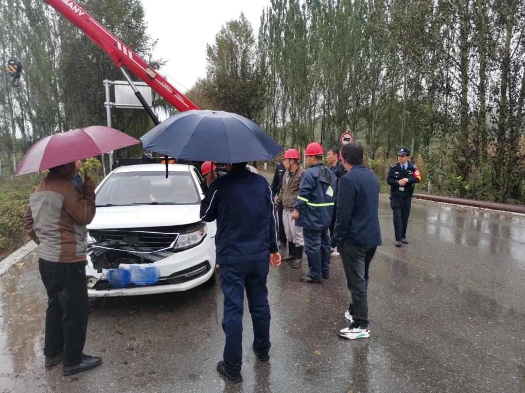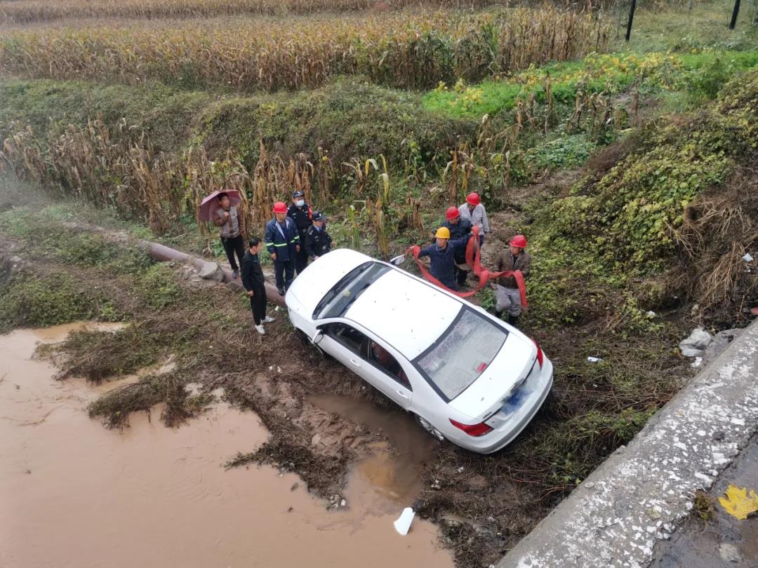 10月5日,滂沱大雨傾盆而下,趕往上大夜的員工苗師傅,在濱河路拐彎時,由于雨天路滑,加上車內(nèi)視線不好,不慎將車滑落潭村橋下,幸好無人員傷亡。一大早,電化廠領(lǐng)導(dǎo)得知情況后,立即組織救援,馬上聯(lián)系吊車司機(jī),組織了檢修車間干部、四位鉗工,拿了兩根吊帶,在最短的時間內(nèi)趕往事發(fā)現(xiàn)場。
