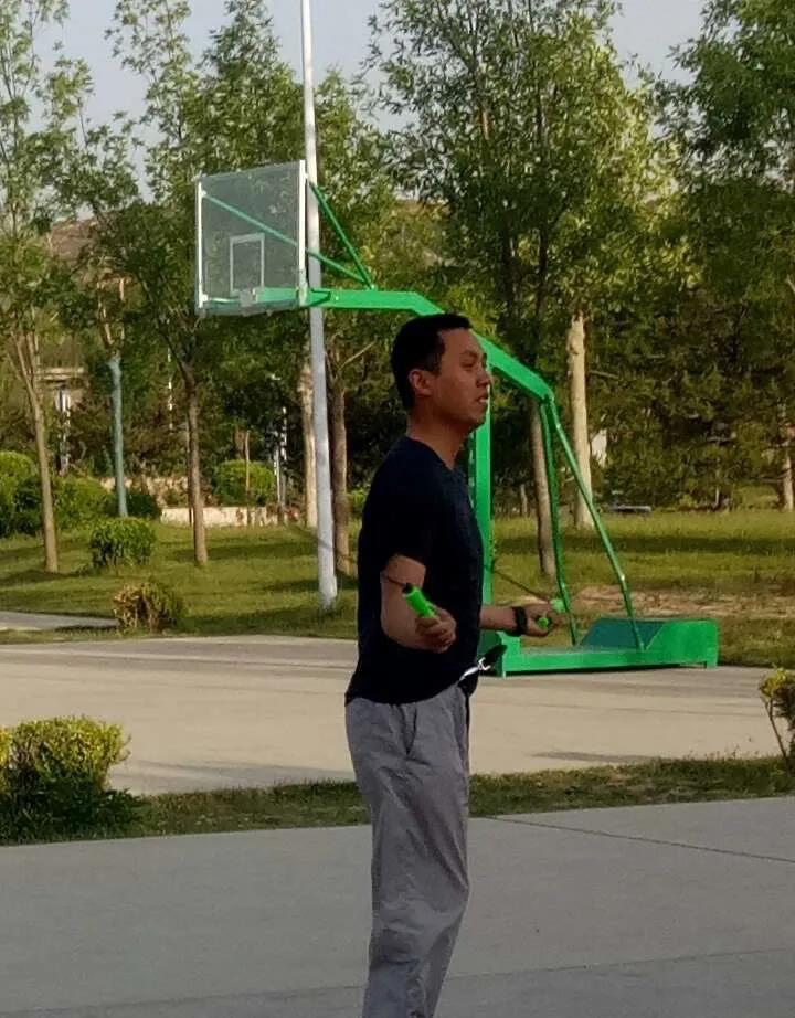 跳繩飛舞快如電,大叉一劈勢(shì)如虹。