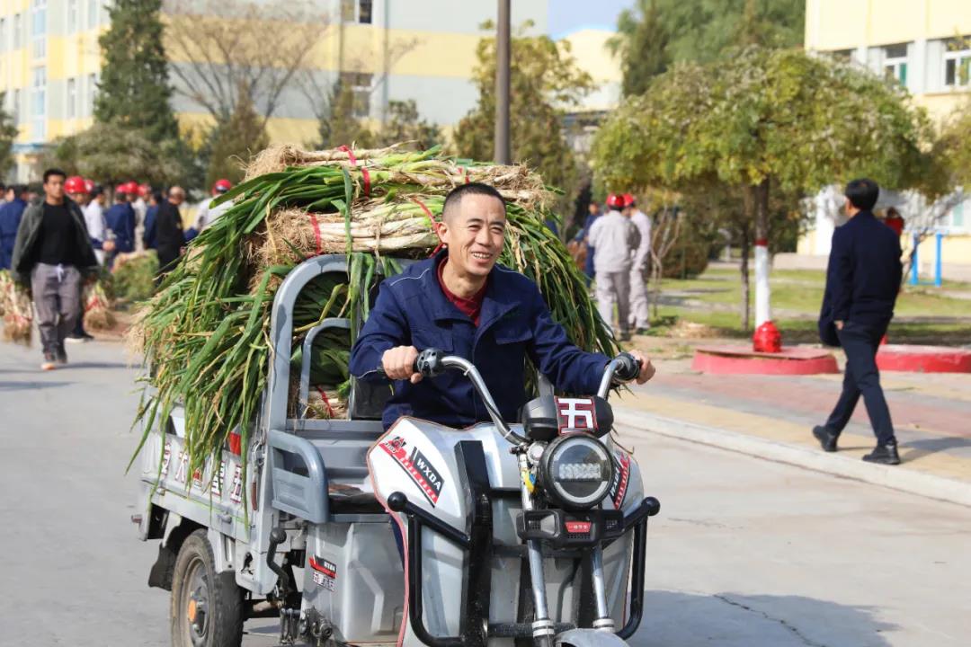 10月29日,隨著一輛輛滿載的卡車駛?cè)胫付▍^(qū)域,公司又一波福利強(qiáng)勢來襲。“公司又發(fā)福利了,好ke si大蔥,不用買了。”電化廠劉師傅高興地向電話那頭的妻子說道。