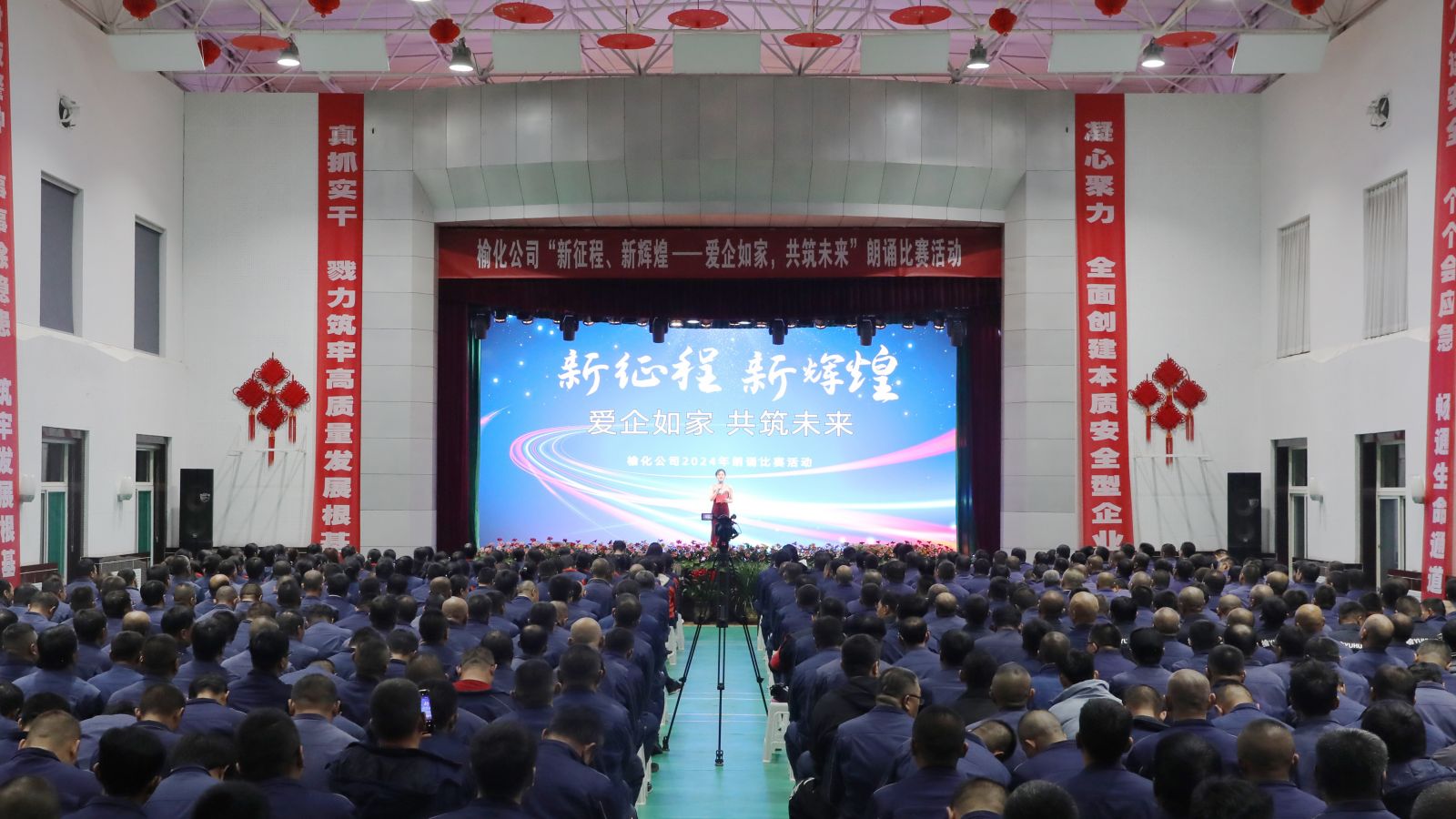 11月15日,公司在多功能廳隆重舉辦“新征程、新輝煌——愛企如家,共筑未來”朗誦比賽活動(dòng),深情回顧榆化砥礪奮進(jìn)的奮斗歷程,唱響精誠團(tuán)結(jié)、奮發(fā)而為的主旋律,凝聚闊步新征程的磅礴之力。公司黨委、董事會(huì)、監(jiān)事會(huì)、經(jīng)理層、工會(huì)領(lǐng)導(dǎo),各單位職工代表共計(jì)500余人參加活動(dòng)。
