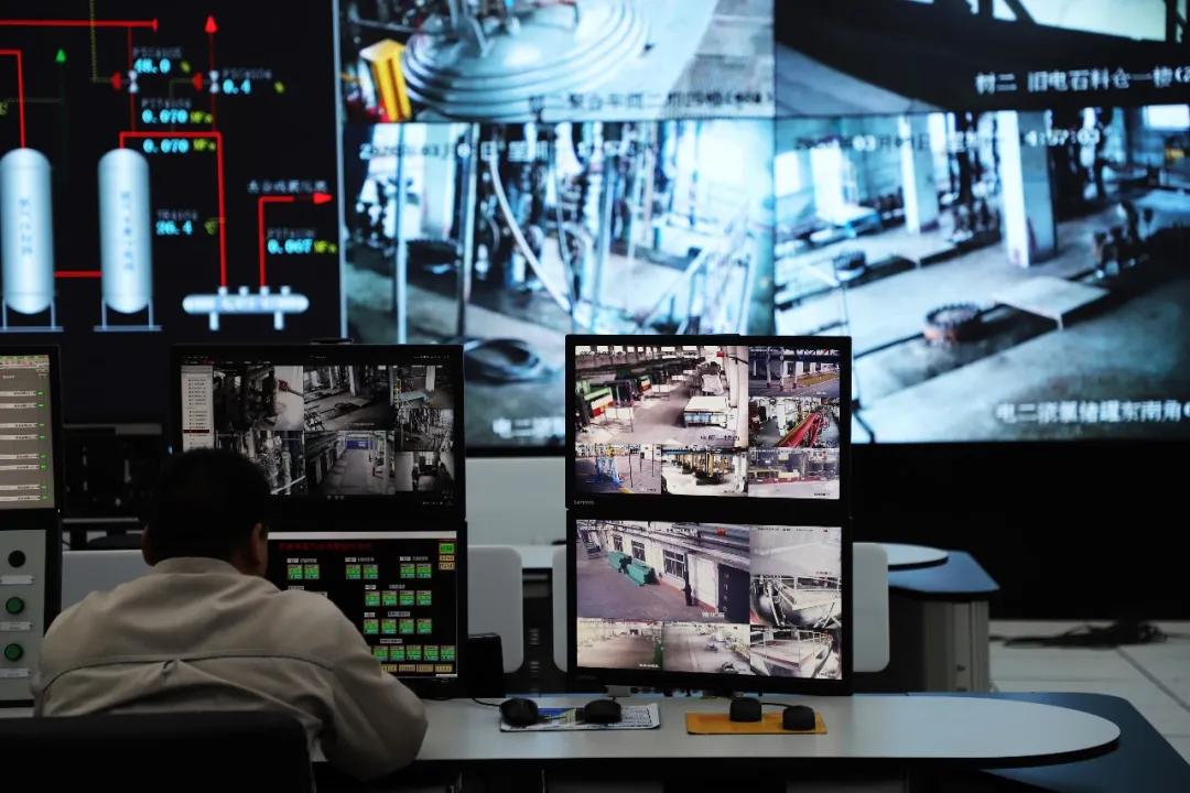 集控室遠(yuǎn)離危險(xiǎn)區(qū)域,實(shí)現(xiàn)遠(yuǎn)程控制,采用一級(jí)防爆設(shè)計(jì),切實(shí)保障了主控操作人員安全;將電化二廠、樹脂二廠多個(gè)工段控制室合并,實(shí)現(xiàn)了對(duì)電化二廠、樹脂二廠生產(chǎn)廠區(qū)的監(jiān)控全覆蓋,并且對(duì)電化一廠、樹脂一廠的重大危險(xiǎn)源全面實(shí)施監(jiān)控。