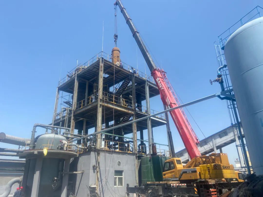 5月19日,樹脂二廠展開對乙炔回收系統(tǒng)的檢修工作,作業(yè)前制定詳細檢修方案,領(lǐng)導(dǎo)干部現(xiàn)場落實各項安全措施。通過本次對乙炔回收管道進行系統(tǒng)清理,對乙炔冷卻器進行更換,對解析塔等關(guān)鍵設(shè)備進行拆檢及內(nèi)部結(jié)垢清理,乙炔回收系統(tǒng)通過負壓回收將殘留的乙炔氣從電石渣漿中脫析出來,達到資源再利用目的,大大改善乙炔回收效果,用實際行動踐行節(jié)能降耗。